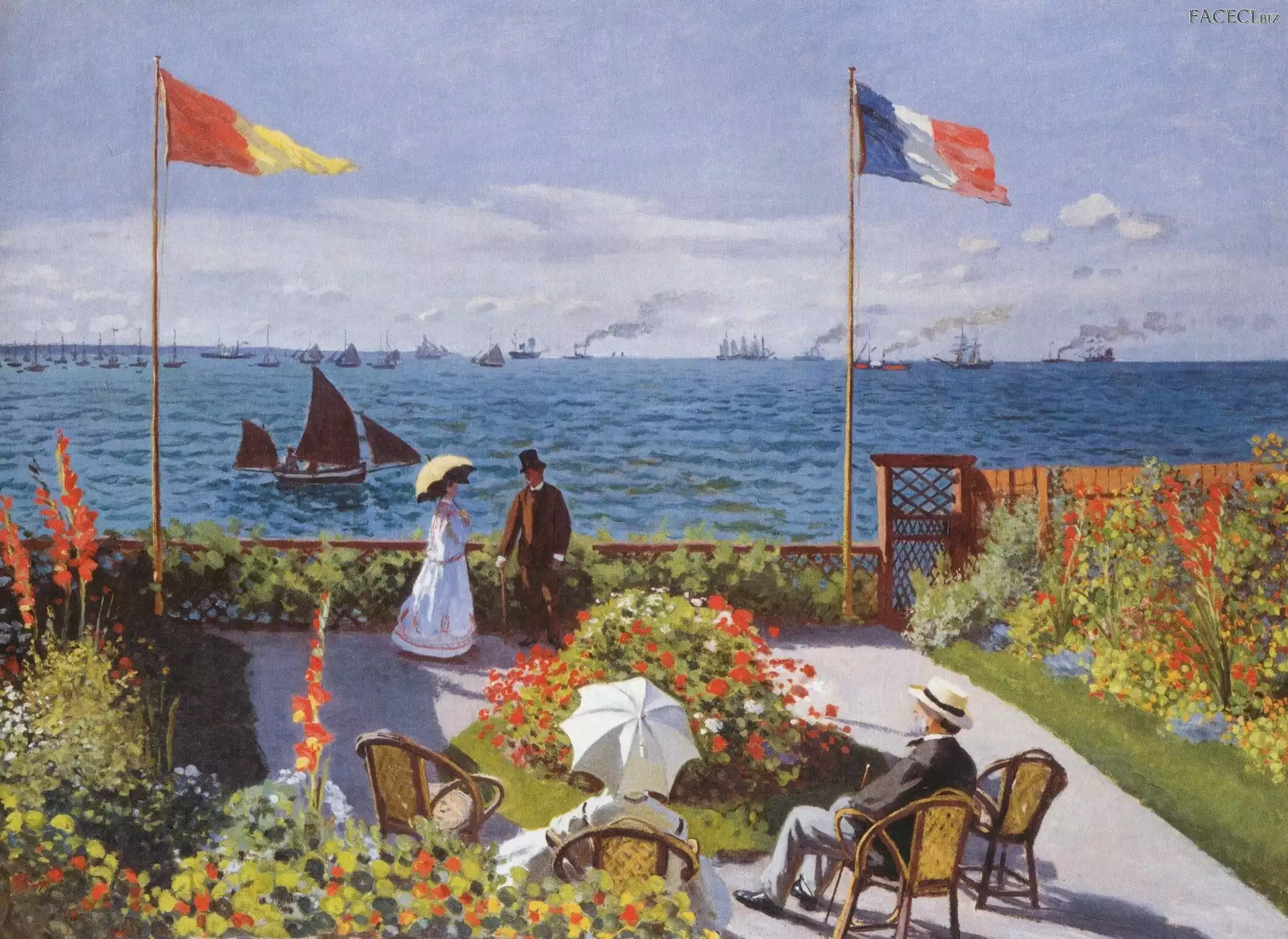 Mężczyźni, Kobiety, Morze, Ogród, Statki